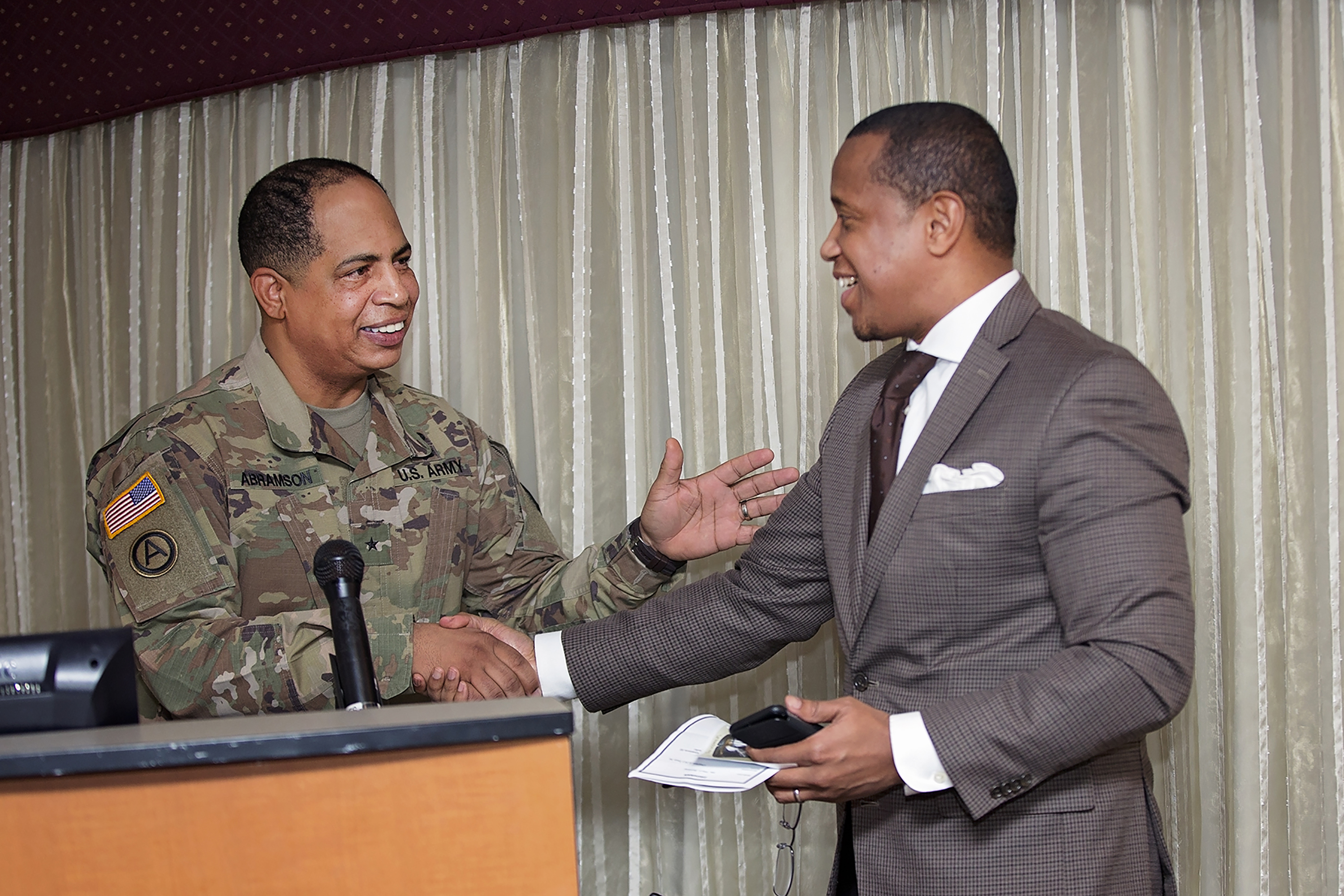 GA: One of the things that I quickly found out is that the work force– civilians, military, and contractor team– here on Picatinny are, number one, dedicated to the mission and very knowledgeable of their mission set – and especially the civilians have been doing this for a while and so if I am to say I am going to catch up to them in terms of the level of detail that they know in terms of working in this enterprise, I am short-sighted, meaning I will never catch up to them in terms of the knowledge base that they have. So then the question then becomes how I can, what can I, bring to the table, to say that I am an invaluable asset to the team called Picatinny. Where I see that I fill in is community outreach. I can help with that. I have the same knowledge base in reaching out to the surrounding communities and provide the narrative of the STEM outreach here on the arsenal. The opportunities not only for again the surrounding communities but the youth again in the surrounding communities and the cities around the Picatinny to bring what we do here on Picatinny and advertising the capabilities we have on the arsenal.