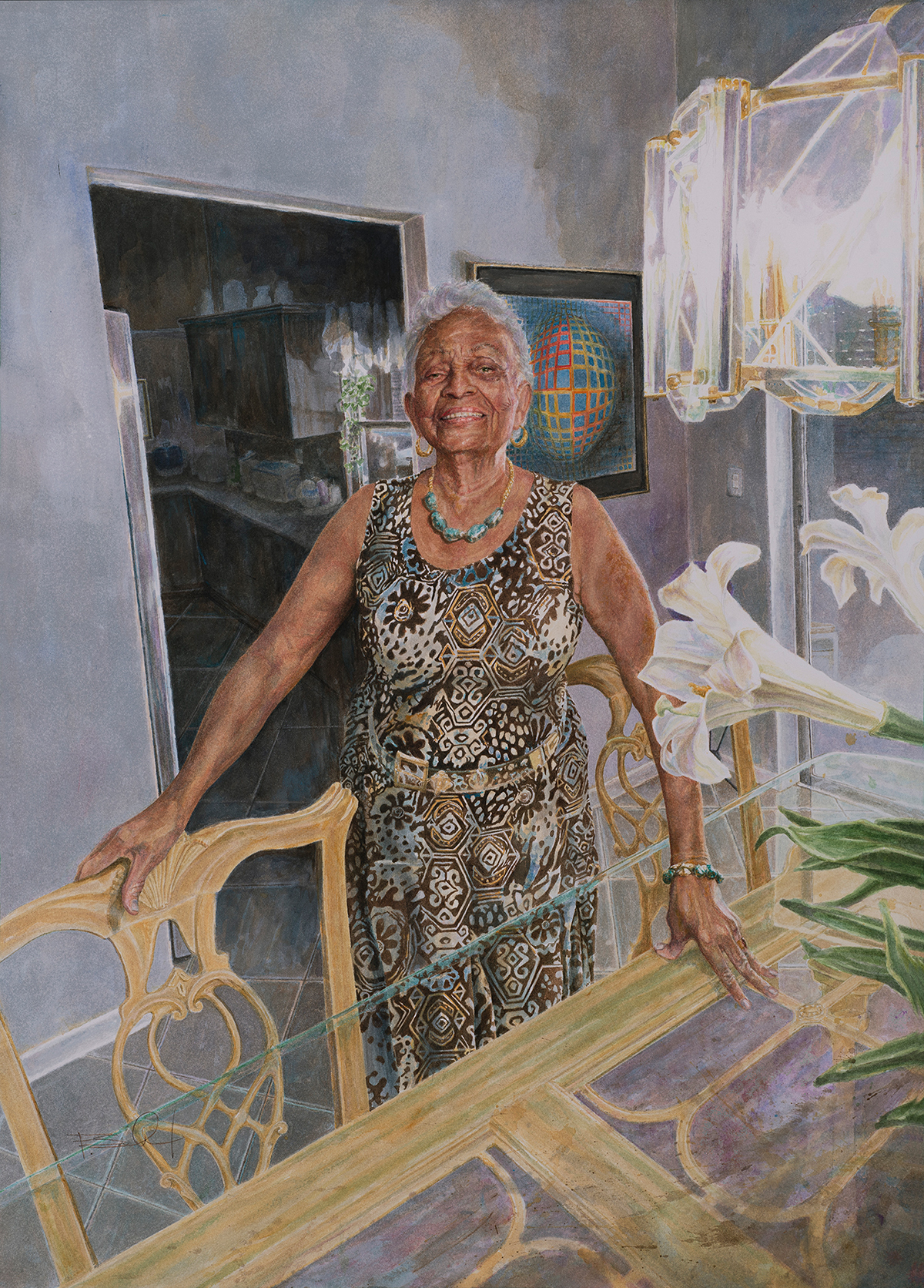 Painter P. (Philip) Smallwood is known for his signature watercolor paintings Lifescapes, a powerful form of portraiture and visual narrative. In these works, Smallwood portrays the subject within his or her natural environment, carefully manipulated to evoke an emotional connection with the viewer. Through composition, line, form, and finely finished surfaces, P. Smallwood creates compelling portraits that convey a feeling about how the subjects live their lives.