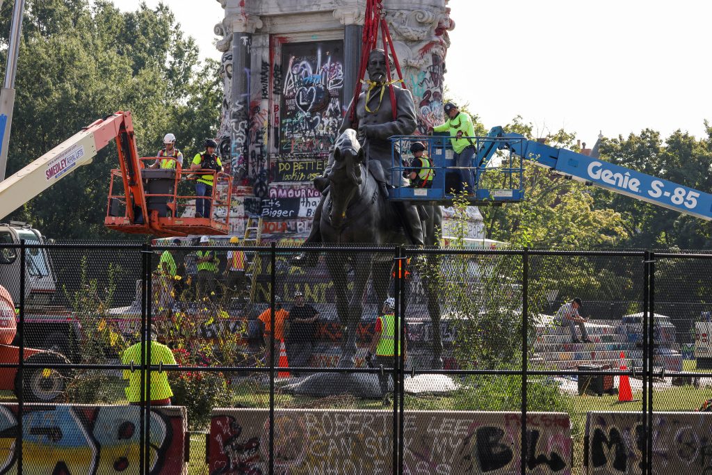 Teardowns included the removal in September of a Robert E. Lee statue from its base in Virginia’s capital city of Richmond after a year-long legal battle over the monument that was the focus of protests over racial injustice.