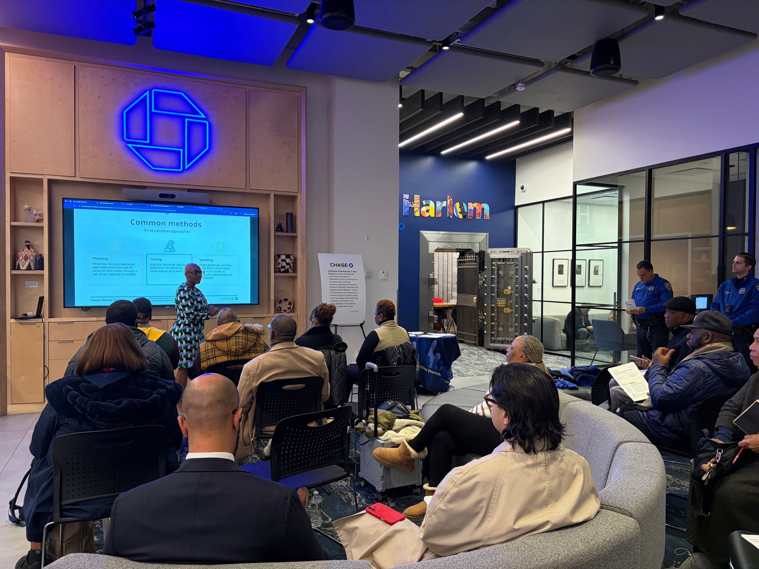 This holiday season, JPMorganChase has teamed up with the NYPD to crack down on scammers, educating and empowering the community to stay safe. As part of International Fraud Awareness Week, JPMorganChase hosted a series of workshops across the country where attendees learned how to spot scams and protect themselves. The Harlem Times was honored to be invited to a presentation, gaining access to expert insights, real-life scam stories, and viable tips. The bank has hosted over 1,000 such workshops.