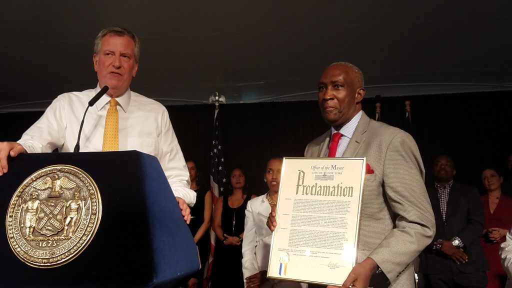 Mayor de Blasio said “Harlem does not need another name. Harlem is a name steeped in history and culture and greatness and if you don’t understand that you shouldn’t be selling property in Harlem.” The Mayor then presented Williams with a proclamation for Harlem Week 2017.