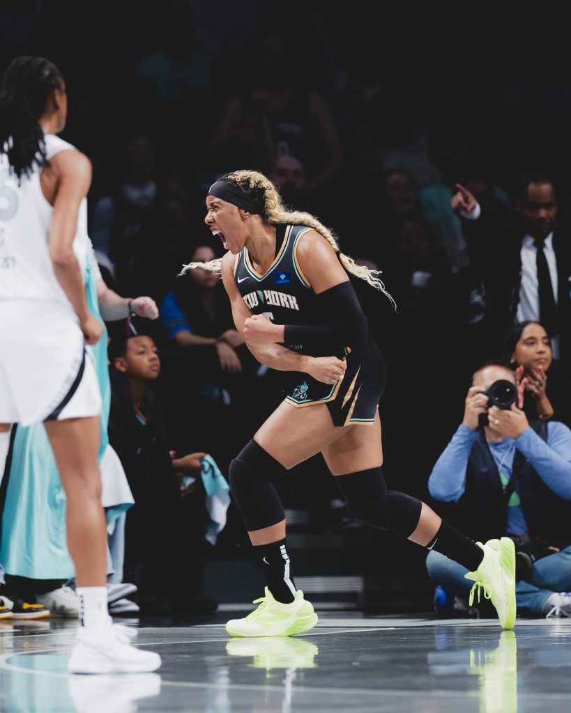 In Game 1, this time in front of their Brooklyn fans, Breanna Stewart and the Liberty stuck to their game plan, playing with confidence on the way to a 87-77 home win. Stewart had her top scoring playoff game in a Liberty uniform with 34 points, while Ionescu put up 21 points and Jones secured 12 rebounds. The star trio’s all-around effort limited the unanimous MVP of the league, A’ja Wilson, to 21 points and a season-low six rebounds.
