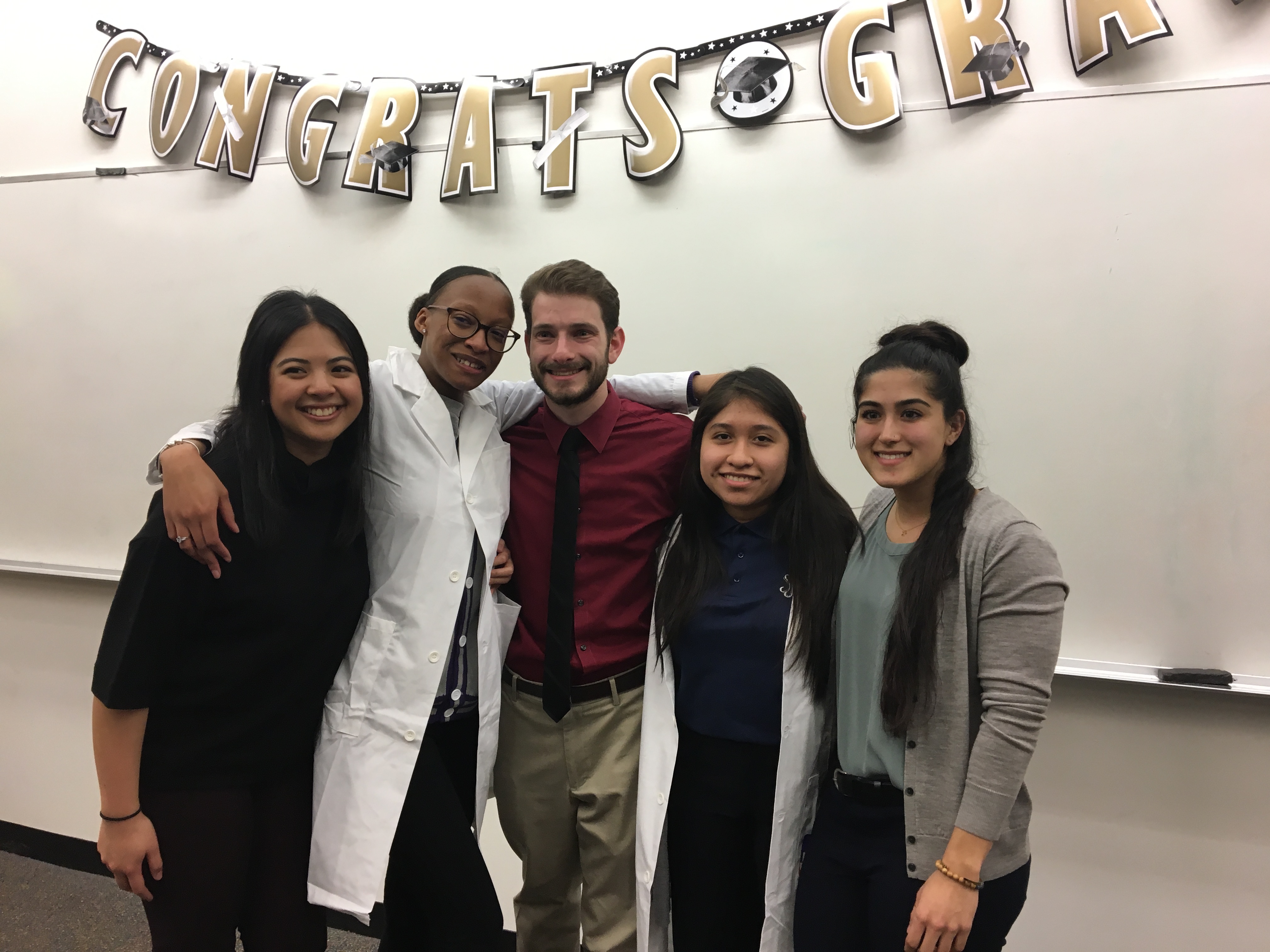 Kayla Simpson second from left and Shaila Cuellar second from right with mentors at graduation.2019
