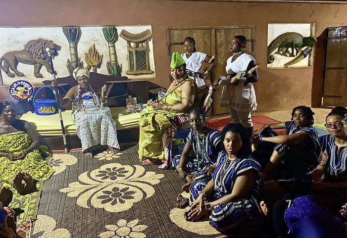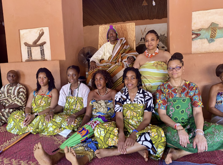 The delegation visited important sites in Bénin such as the Holy City of Cana; The Route of Resistance; the former battle fields and mass grave of the Agoodjié, and more. Their training took place under the Queen Mother and Queen Mènon Kpodjito Zognidi’s oversight at the Royal Palace of Sedessa. Their meetings with other royal figures such as their majesties: the new central king of Hwegbeja (Abomey), Dada Dëwênondé Gbêhanzin, descendant of the last king of Dahomey; and King Langanfin Glele Togbe of Cana, culminated in a benediction and naming ceremony at His Majesty the Agonlinhossou Yêto Kandji, King of Agonlin.